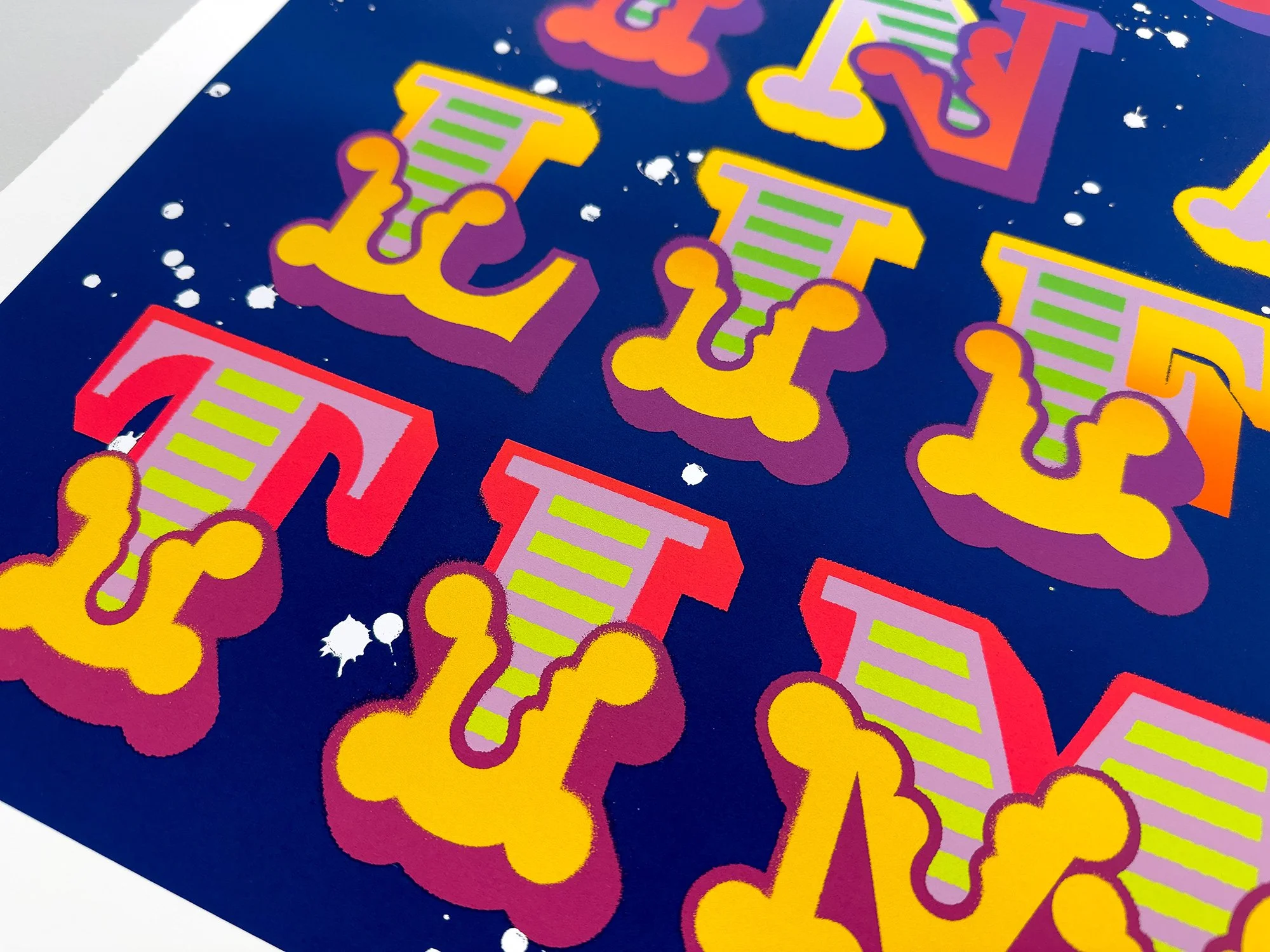 16 colour silkscreen with multiple background colours, printed on Somerset Satin 300gsm.