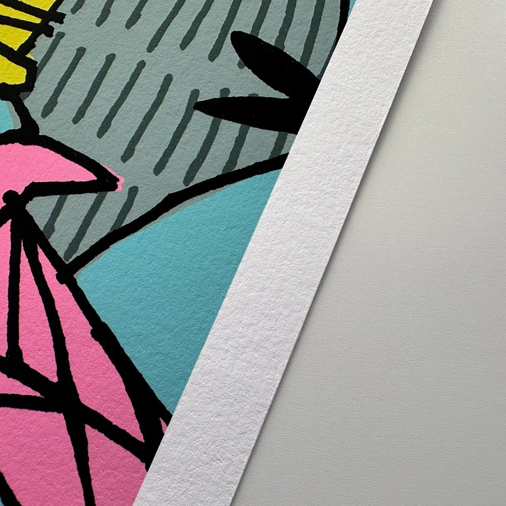 Additionally, we offer the option to incorporate silkscreen elements into your Giclee edition. Special finishes such as gloss varnish, custom colours metallic ink, and metal leafing can be applied to digital art prints. This hybrid approach introduces that little bit extra to your edition, accentuation specific elements and creating a bespoke, premium finish to each edition.